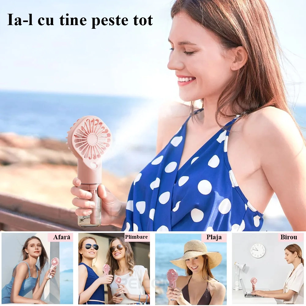 Datorită designului compact și alimentării prin USB, ventilatorul poate fi folosit oriunde, de la birou, la o plimbare prin oras sau chiar la o iesire la cumparaturi pentru o răcorire in miezul zilei.