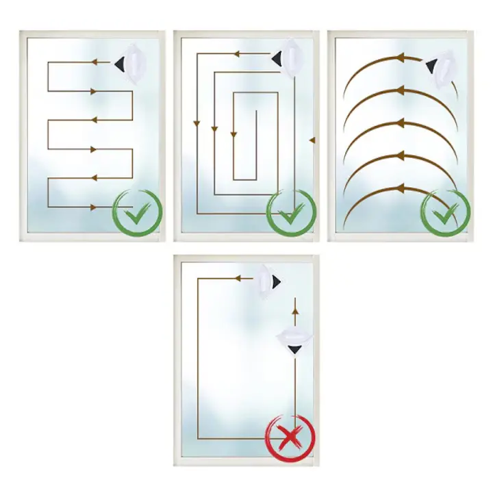 5. Incepe sa glisezi stergatorul inainte si inapoi pentru a curata geamul fara dungi si picaturi.