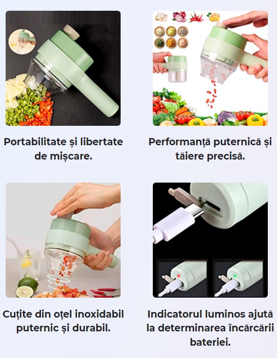 Beneficiind de încărcare USB, acest tocător elimină grija bateriilor descărcate sau a găsirii unei prize disponibile. Acest aspect face tocătorul electric cu încărcare USB ideal pentru utilizarea lui acasă, cât și în călătorii sau în aer liber.